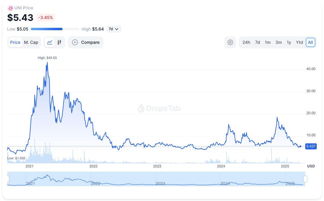 Uniswap has solidified its place as the leading decentralized exchange in the DeFi space, boasting a total value locked (TVL) that hit $3+bn in 2025 and making UNI one of the most prominent governance tokens in crypto.