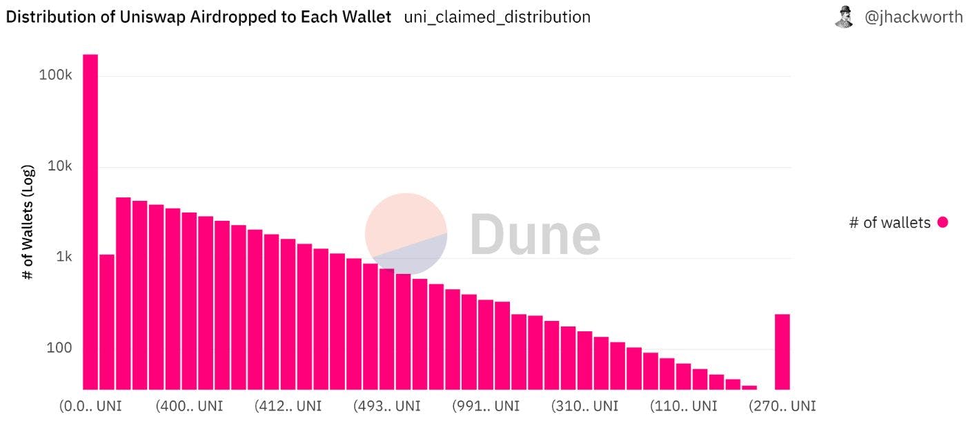 - The 2020 UNI airdrop, which gave 400 UNI (valued at $1,200 then) to early users.