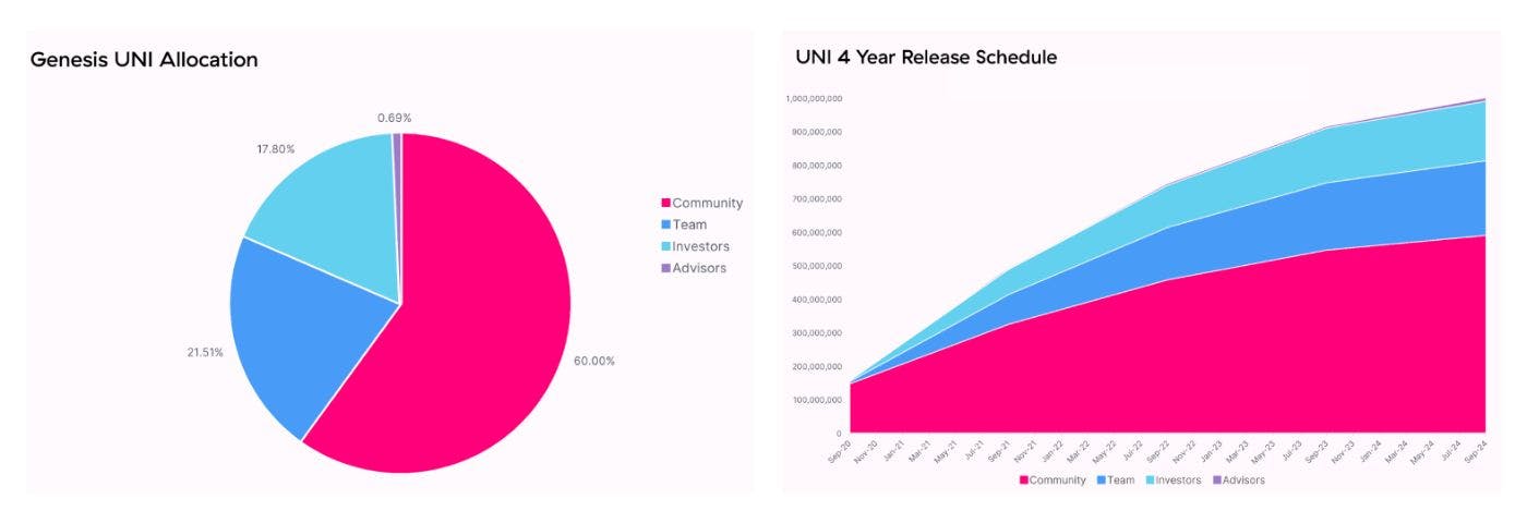 Uniswap dedicated 60% of UNI’s genesis supply to the community, with 15% for early users and liquidity providers. They also ran liquidity mining programs, rewarding pools like ETH/USDT with UNI to incentivize participation.