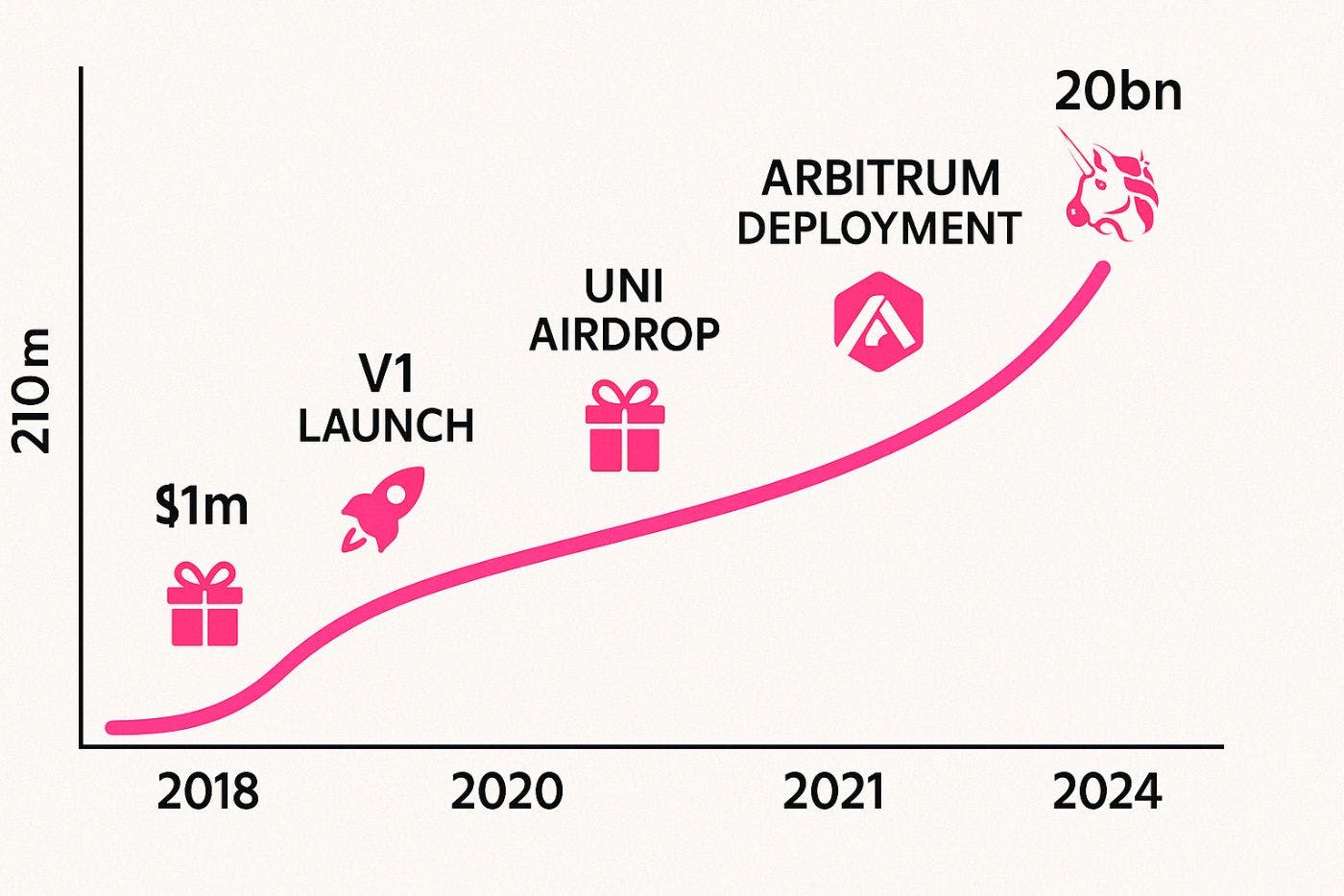 This analysis explores Uniswap’s growth, go-to-market strategy, focusing on how they positioned themselves, formed partnerships, and leveraged the iconic UNI airdrop. Everything here is based on publicly available information.