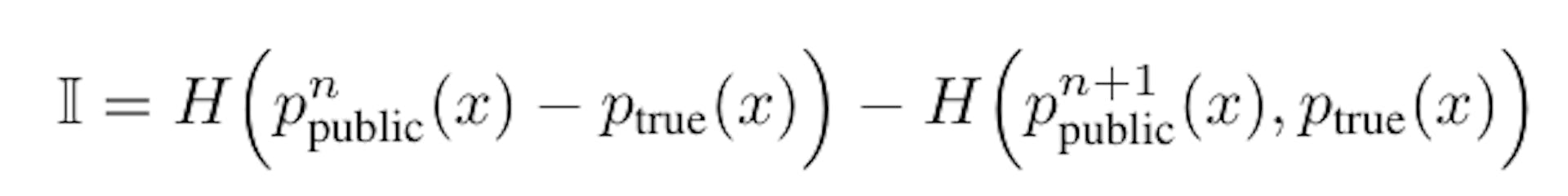 While the individual payoff is based on the true movement of the public pdf towards the true pdf, the public pdf is updated based on all samples. This reflects that public consciousness is overwhelmed with knowledge claims and cannot evaluate each, so that a consensus is formed around the sum of all voices. Unlike the individual innovator who has a narrow focus and observes whether her patent ultimately generates value, the public sphere has limited attention and is forced to accept the aggregate contributions of the marketplace of ideas