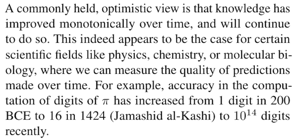 [6] If individuals knew they were sampling from a truncated distribution, they could use the Expectation-Maximization algorithm to recover the full distribution, but again this process is meant to be metaphorical, and there is no known real-life method for recovering the source knowledge from AI-generated content. [7] Zamora-Bonilla (2010, p.328) suggests a scientific process of ‘verisimiltude’, where we judge evidence not with reference to objective truth by by “perceived closeness to what we empirically know about the truth, weighted by the perceived amount of information this empirical knowledge contains”. For a more recent review of models and experiments on human cultural transmission see (Mesoudi and Whiten, 2008) and in particular the model of Henrich (2004) which attempts to explain how the Tasmanians lost a number of useful technologies over time. [8] For example, Christian communities at times actively promoted and preserved ‘canonical’ texts while neglecting or banning others, with the result that those excluded from reproduction by scribes were taken to have little value. Perhaps the heliocentric view espoused by Aristarchus of Samos in the 3rd century BCE would have been more readily (re)considered if his works had not been neglected (Russo and others, 2003, ch.3). A number of authors, such as Basilides, are known to us today only through texts denouncing (and sometimes misrepresenting) their views (Layton, 1989).