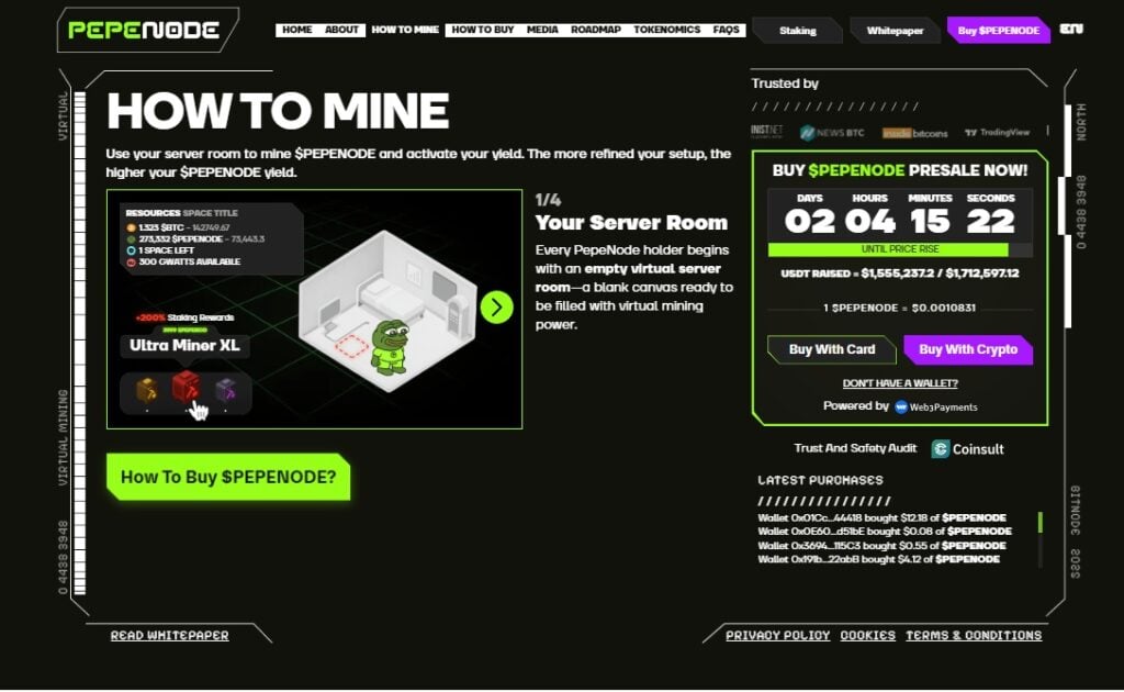 Pepenode is introducing a fresh concept in the crypto space with its “mine-to-earn” model, designed as a game-like ecosystem that replaces traditional mining rigs and high electricity costs with virtual server rooms.