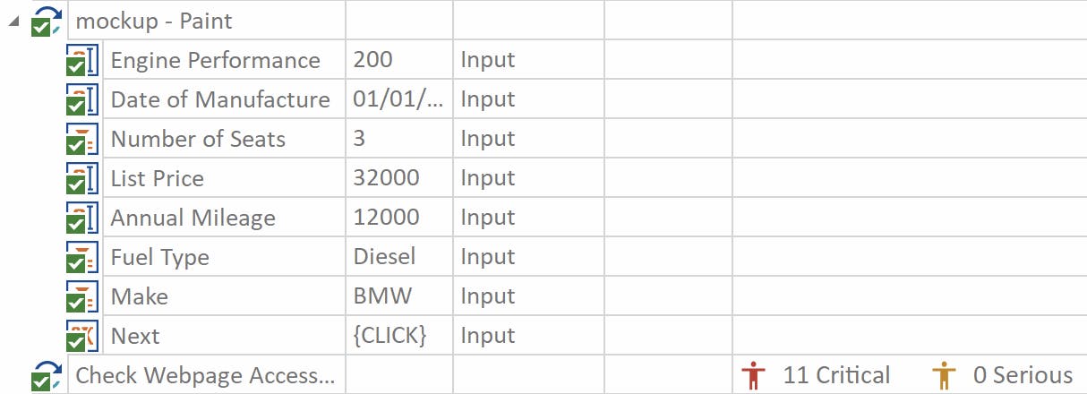 From there, to build out a test, all I needed to do was provide the values I wanted Tosca to enter on the form: