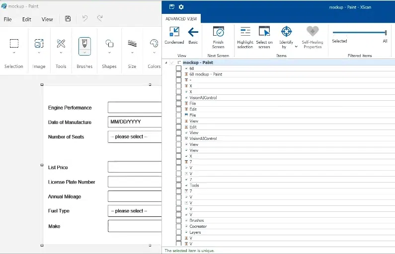 In Tosca Commander, I instructed Tosca to scan an application and set up a new testing module based on whatever application I wanted to use. I took a simple wireframe of a web form and opened it up in Microsoft Paint. Then, I used the Select on-screen functionality in the screen scanner to choose the right elements from the page to make a testing module.