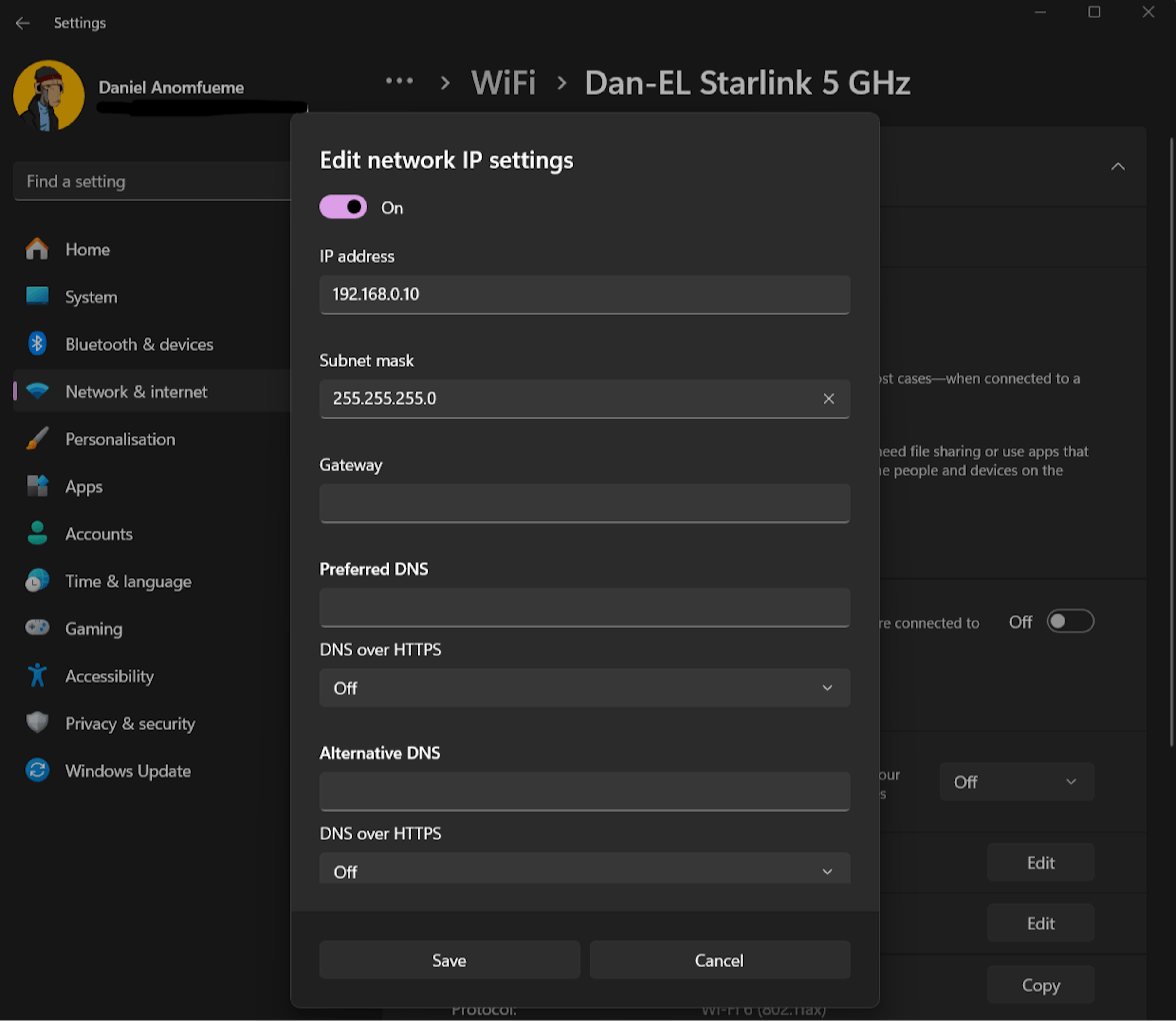 Toggle IPv4 and you would see a drop-down of settings