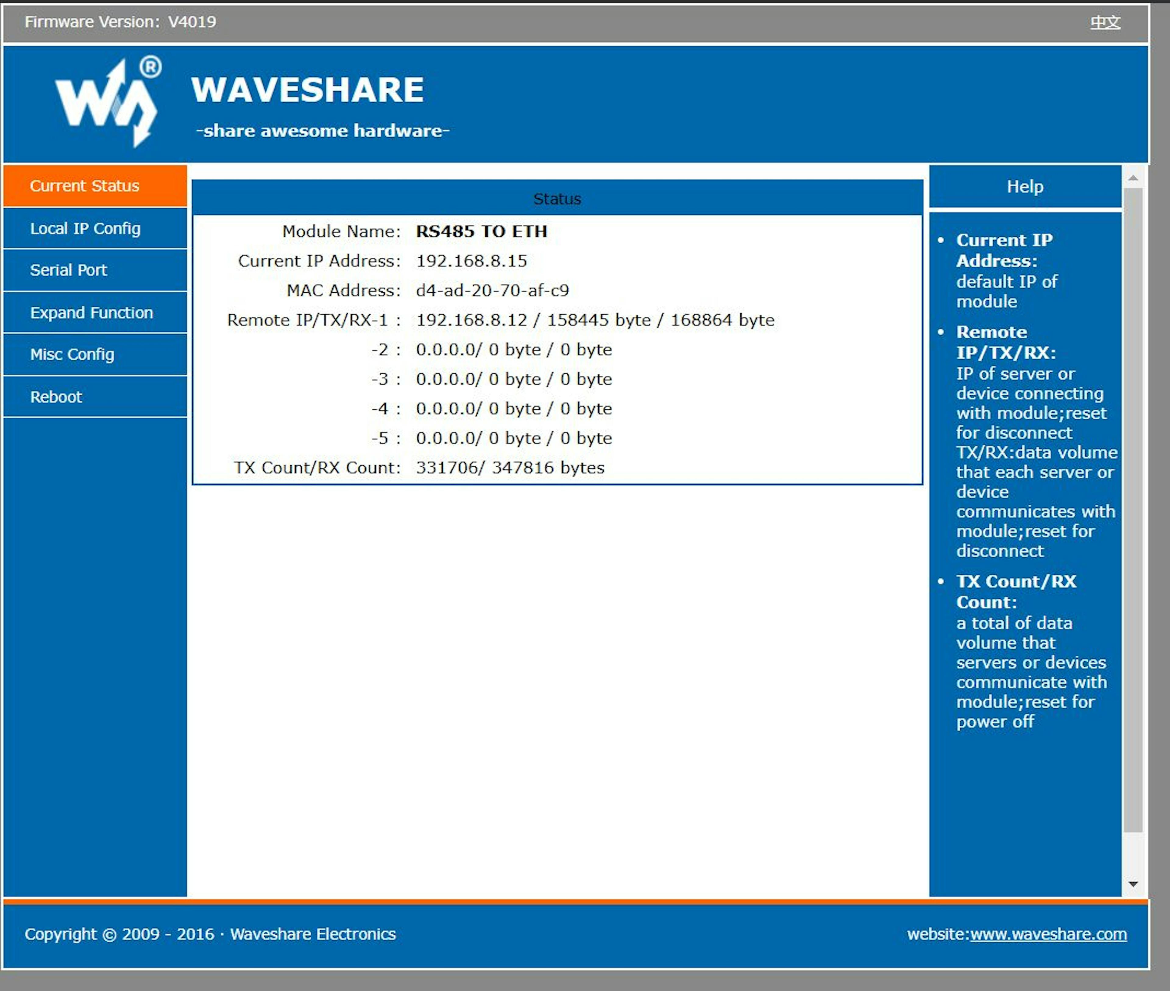 host: 192.168.8.15 # Waveshare RS485 adapter IP